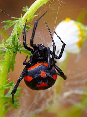 Паук имеет среднюю величину: самка 10—20 мм, самец 4—7 мм. Тело чёрное, у самца и самки на брюшке красные пятна, иногда с белым окаймлением вокруг каждого пятна. Полностью половозрелые особи иногда приобретают чёрный цвет без пятен, с характерным блеском. Глаза самого паука устроены так, что способны видеть как днем, так и ночью.